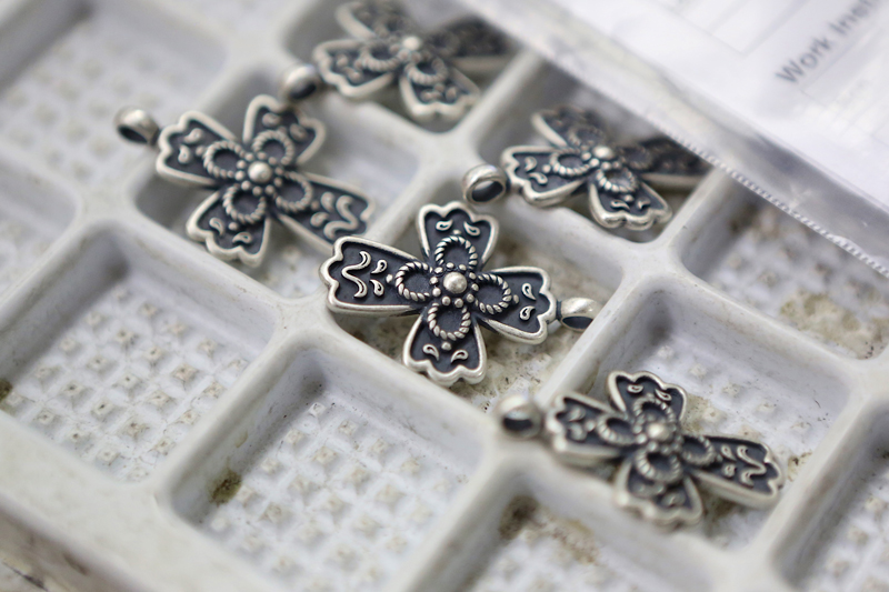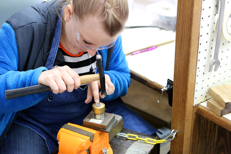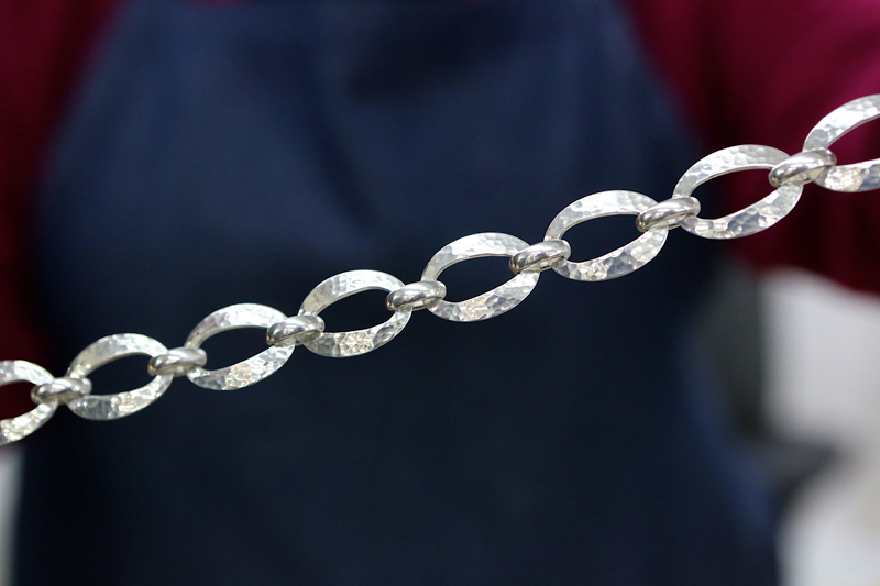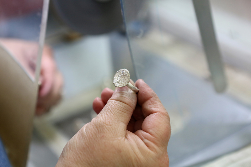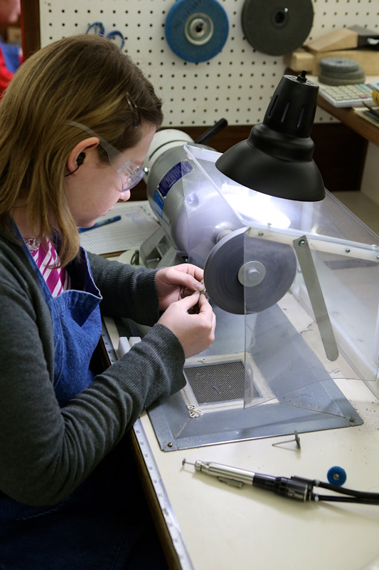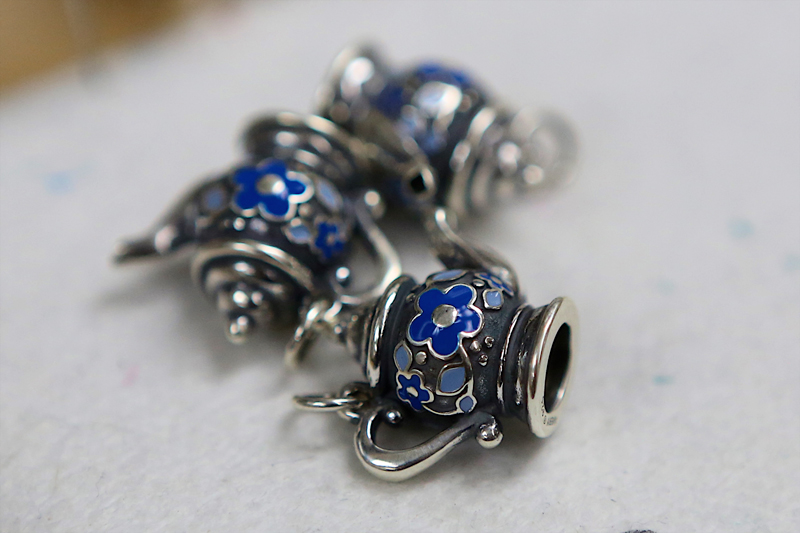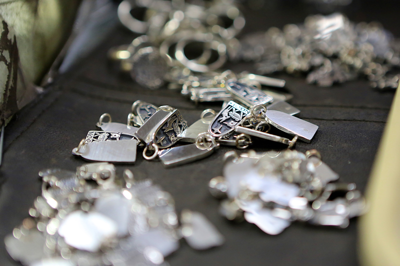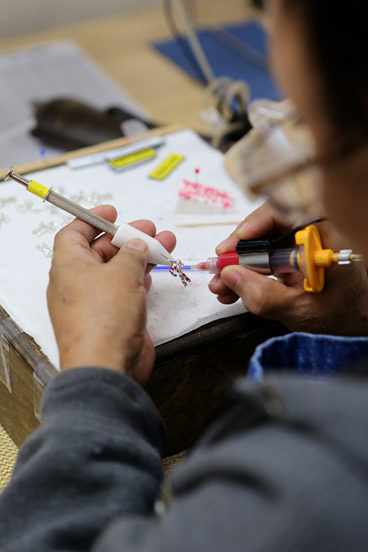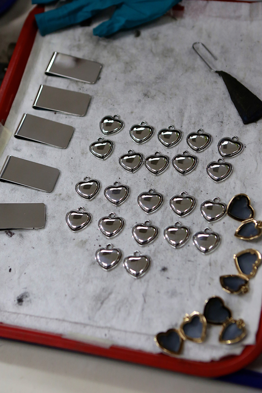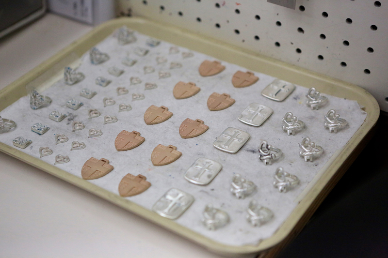 We make our way through more than six different buildings on this campus, where we see craftsmen, both male and female, casting, finishing, hammering, polishing, enameling, and stamping. We meet employees who have been working here for more than 30 years. One of those employees also has three children who have made James Avery their career choice.