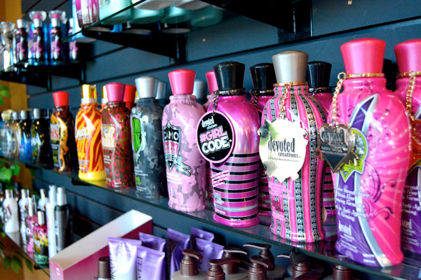 For customers who want that suntanned look quickly, Sunkissed offers spray tanning, achieved by a customer entering a booth that emits a fine mist of tanning solution. Regardless of the type of tanning session selected, all customers must wear goggles during the procedure, Ramsey says, and the salon provides them. “They block 99 percent of UV rays.” The salon also offers custom airbrushing, which requires the aid of a specialist who works with the customer to achieve the desired result.