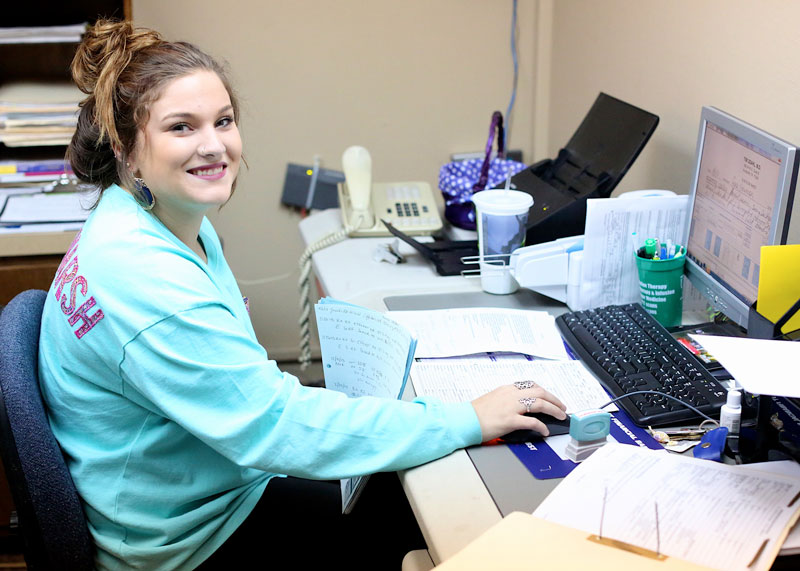 What began as a part-time endeavor in 1991, turned into a full-time practice by July of 1992. Three lovely ladies attend to patients daily in the 1600 square foot office: Maury Mejorado greets patients, Brenda Luker wades through insurance and billing issues, and nurse Sarah Seale takes vitals and readies patients to see the doctor in one of three exam rooms which each contain a half-bath. Also, an ultrasound machine is kept on the premises. SHSU student Morgan Cheatham also assists the staff in varying capacities.