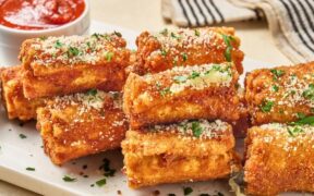 Ingredients 6 lasagna sheetscooking spray8 oz pimento cheese6 mozzarella sticks, halved4 large eggs, beaten2 cups panko breadcrumbs2 cups oil for frying, or as neededParmesan cheese (optional garnish)chopped scallions (optional garnish)ranch dressing or marinara sauce for dipping Directions Step 1: Bring a large pot of salted water ...