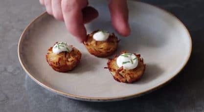 Step 5 Grab potato mixture from the bottom of the bowl to get as much moisture as possible; fill the prepared muffin cups. It’s okay if the mixture comes up above the pan by 1/2 to 1 inch.