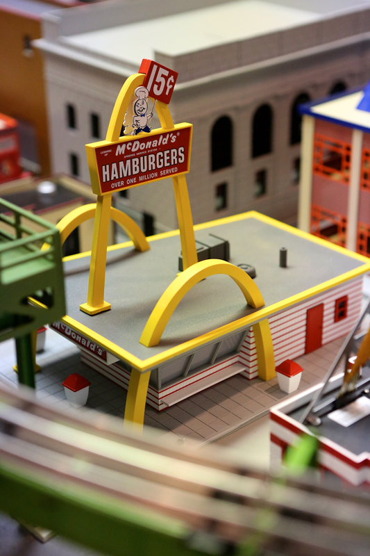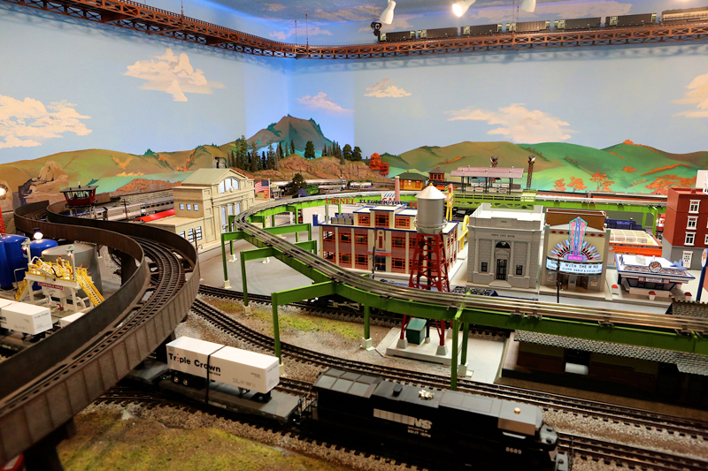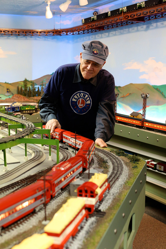 I like to run the trains. Some collectors want to be like engineers…they want to switch tracks, and back the engine up, and connect to cars…I like to run the trains. I told the firm in designing my permanent layout that I want you to put as many tracks on so I can run as many trains at once. So, I’ve got two on the upper level, I’ve got eight on the base level, and I’ve got two more on the lower subway level. Some people could spend ten years building a permanent layout like mine and do all the work themselves. I don’t have ten years, and I don’t enjoy the painstaking building like some people do. I want to participate, but I’m getting mine done in six months, so I can get on with enjoying it. Some people don’t even want to run the trains; they just want them to sit so they can look at them. If I wear mine out, then I wear mine out! I like to run the trains.
