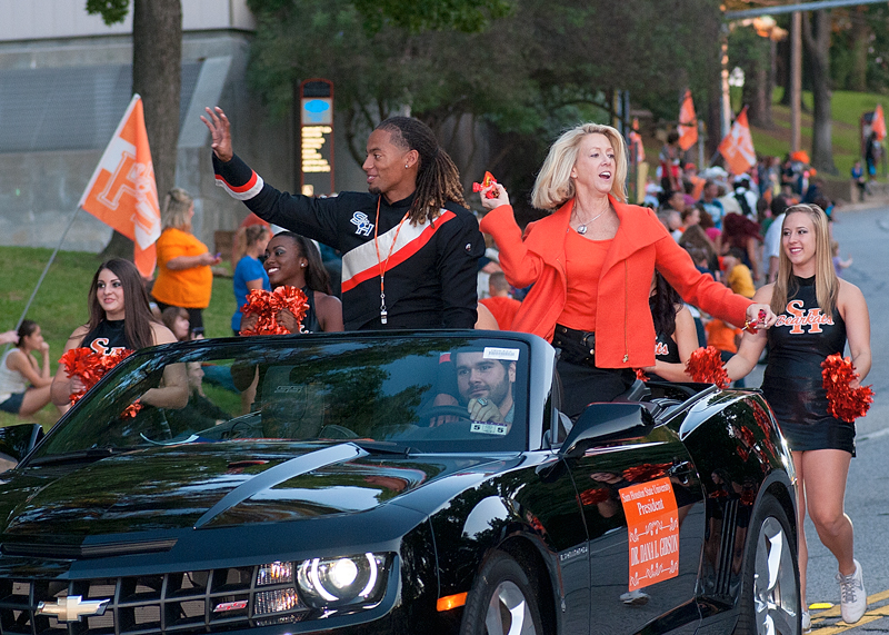 Dr. Dana Hoyt is nothing if not a hands-on President of SHSU. In addition to managing tasks such as education, public relations, fundraising, and administration, Dr. Hoyt also embodies the “up close and personal” experience that SHSU offers. She has danced with the Orange Pride dance team, taken part in a promotional music video, and competed with students in Wii boxing. Now in her fifth year as President, Hoyt has overseen massive growth in student enrollment, expansion of campus infrastructure, and the initiation of numerous academic programs. In December, she sat down with Professor Mike Yawn to discuss her background, her work as President of SHSU, and the future of the University.
