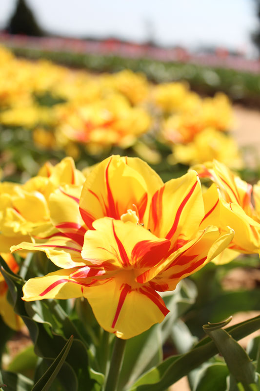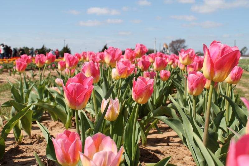 Open 7 days a week from 9 am-8 pm, there is an entrance fee of $5 a person on weekends and $3 a person Monday through Friday. The colorful tulip fields are a perfect location for photography shoots to mark an occasion or celebration, with an entrance fee of $25 and $3 for each additional person to take unlimited photos in front of their beautiful tulips. Rows of pink, white, coral, and yellow flowers spread across the earth like colors on a canvas, a true work of art against the blue North Texas sky. And a form of art it is, growing a field of healthy and flawless tulips; rows of vivid pink, yellow, and lavender growing toward the sun, petals open and soaking up the suns rays. Perhaps the most interesting tulips are the ones that start with a yellow at the base of the petal, fading into a soft pink toward the top edge.