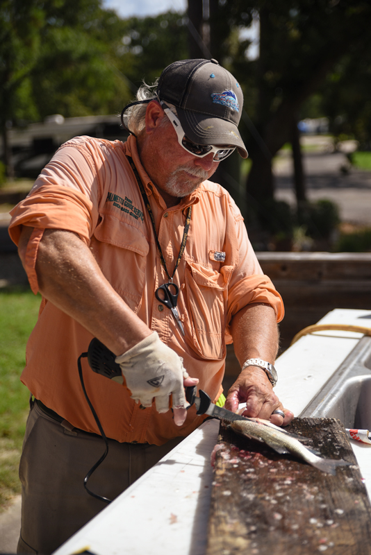 After a fun morning of adrenaline spurts and hoots and hollers, the sun starts to warm up and intensify. At 10:15 am, I catch one last fish, and we begin the trek back to the boat ramp. Dave tosses all the fish into a pile on the deck for a photo opp, and Libby lays on her belly, camera in hand, elbows on the deck (the things she does for good pictures). “She’s really into it down there,” Dave says, and I laugh. “She always gets the best pictures, though!” I answer. He cleans the fish with ease and sends us home with a Ziploc each of fresh fish fillets. MMMM. Fried fish—it’s what’s for dinner! He lets me keep the big fish I caught with an, “I give credit where credit is due.”