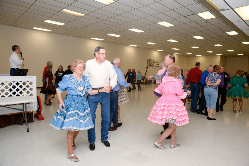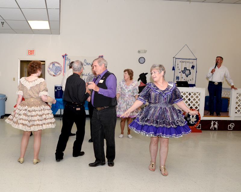 Every Tuesday night at the Tri-County Building on Hwy 75 just south of town, the Huntsville Promenaders meet for hours of laughter, friendship, fun, and square dancing. One of many such clubs that are a part of the Texas State Federation of Square and Round Dancers (TSFSRD), the Promenaders has been an active club since their re-boot in 1996. Five of the original members are still involved, including Don and Nell Smith, a couple built on dance. Twenty years ago, Mrs. Nell told Don that if he wanted to marry her, he had to learn to dance—so he did, and they served as the club’s first presidents for the 1996-1997 session.