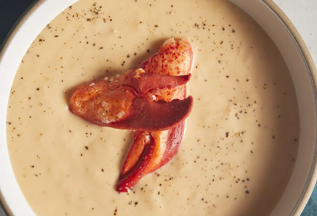 |Pour vegetable and broth mixture into the container of a blender, and add 1/4 cup of the lobster meat. Cover, and process until smooth.