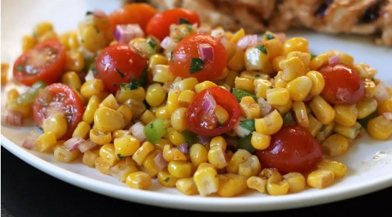 Combine corn, tomatoes, bell pepper, and onion in a large bowl.